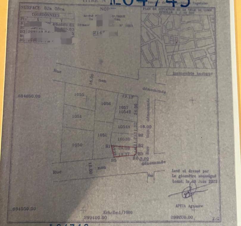 ANEHO-HABITATTerrain 3/4 de lot cloturé avec titre foncier ... tres bien situé en plein centre ville en angle de rue à 150m du goudron comportant une construction de chambre salon ,, garage + une pièce....
