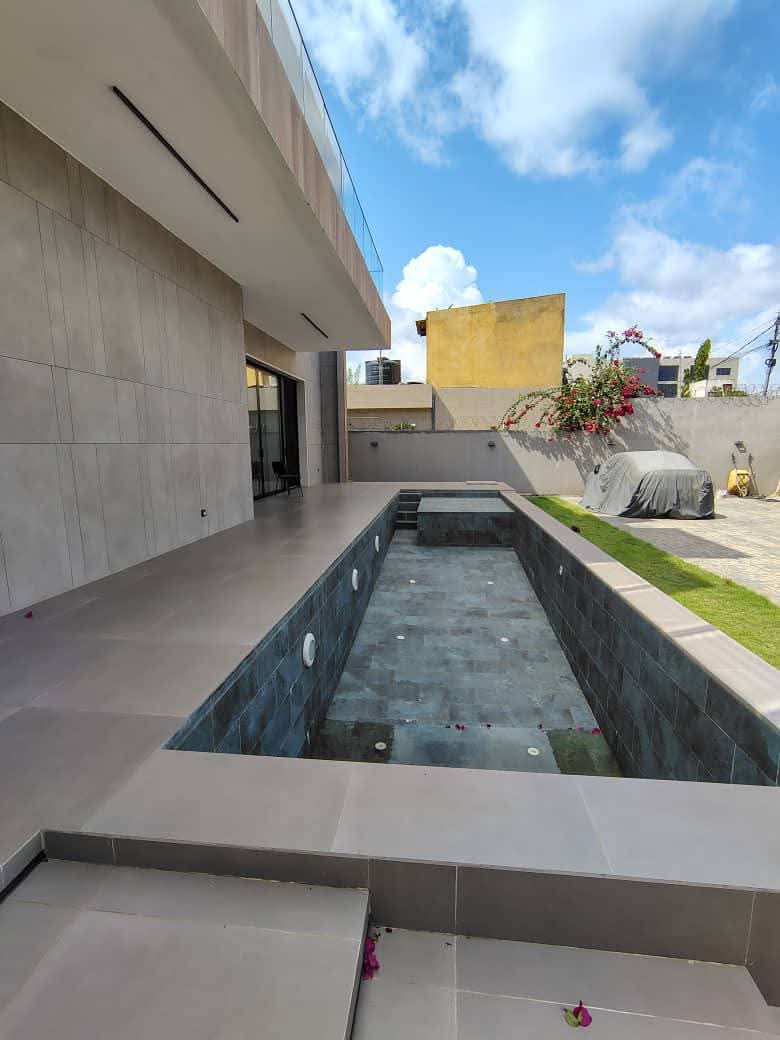 AU RDC :: Une grande chambre salon ... 3 chambres avec leurs sanitaires et placards ... une cuisine moderne bien équipée .. une guérite ... une piscine .. une dépendance .. garage pour 4 voitures.. un jardin dans la cour..