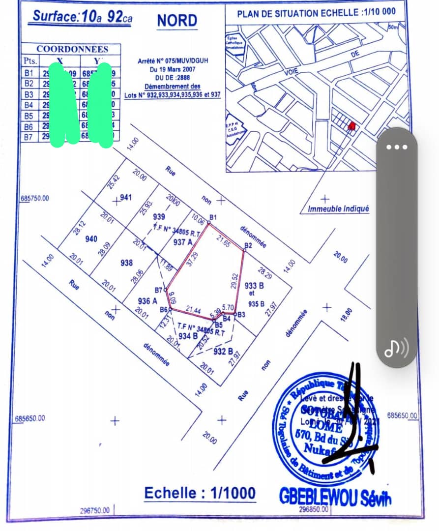 ANEHO-HABITATTerrain 1 lot 3/4 avec titre foncier ( soit 1092m2 ) ... tres bien situé entre la station CAP et les Rails ...