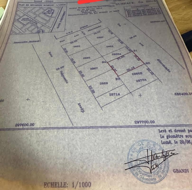 ANEHO-HABITATTerrain 1 lot cloturé avec titre foncier en cours .... tres bien situé en plein centre ville vers le CEG avédji au bord de la grande voie de 28m...