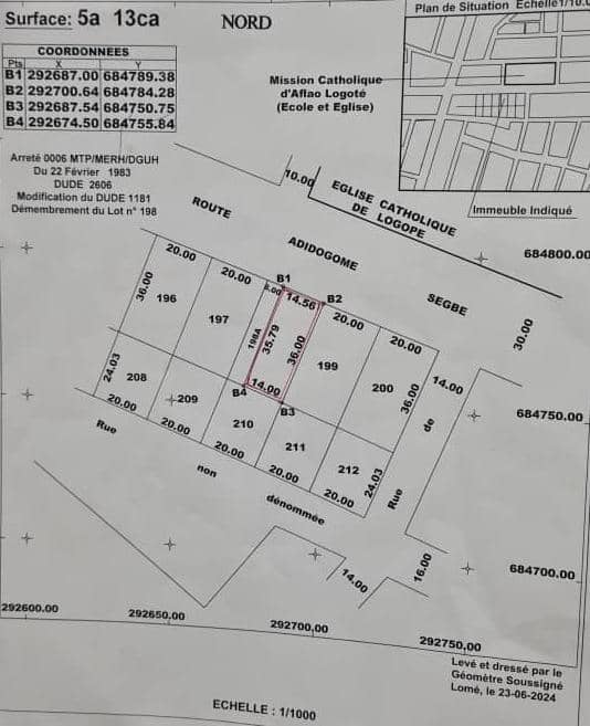 ANEHO-HABITATTerrain 1 lot avec un nouveau tampon OTR + mandat notarié ( soit 513m2 ) tres bien situé en bordure du gouidron juste en face de l'église Catholique de Logoté...
