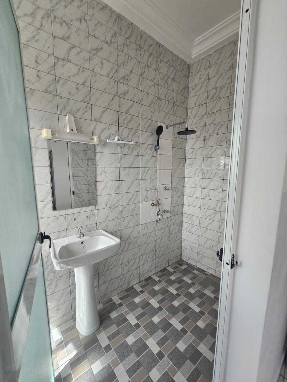AU RDC :: un grand magasin ...un garage ... une chambre salon avec wc douchje cuisine interne ....