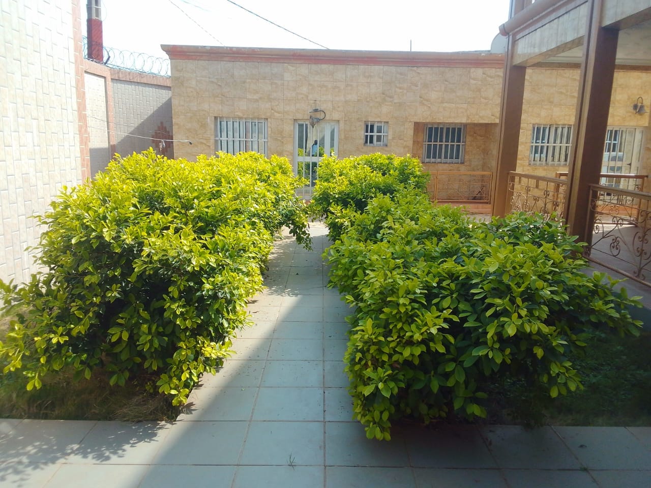 AU RDC :: un wc visiteur ... une grande cuisine ... un grand salon magnifique ...2 chambres autonomes climatisées ... une dépendance de 2 appartements d'une chambre avec wc douche , salon et cuisine .... un jardin ...