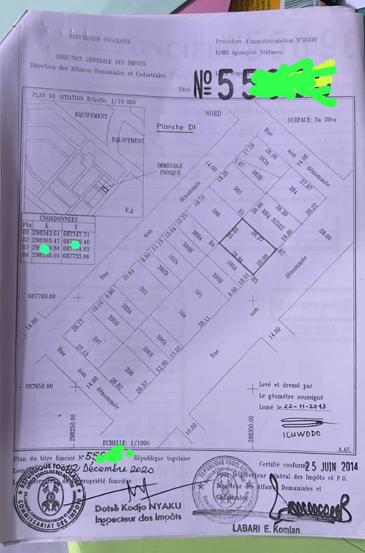 ANEHO-HABITATTerrain Stratégique de 1 lot cloturé avec titre foncier ... très bien situé en plein centre ville à Agoè-téléssou sur la grande voie Anti-Gang ( 28m ) dans un environnement propre ....
