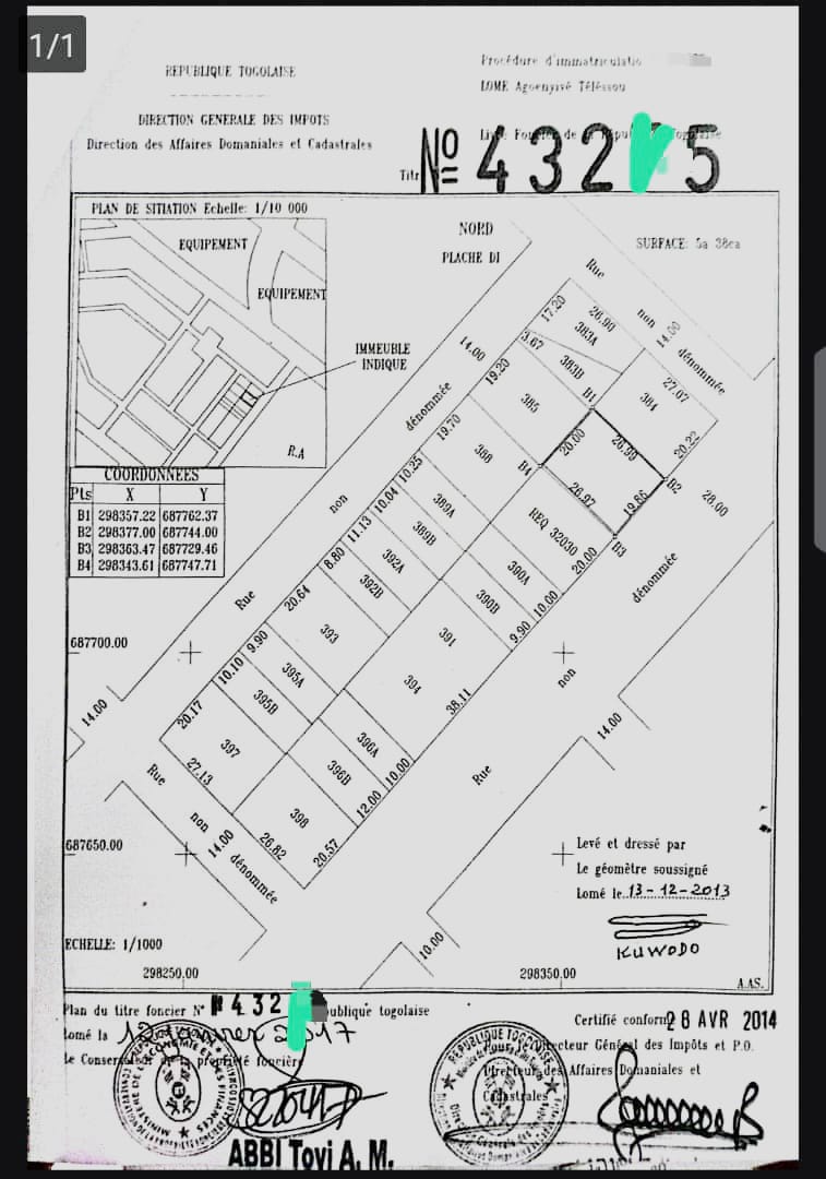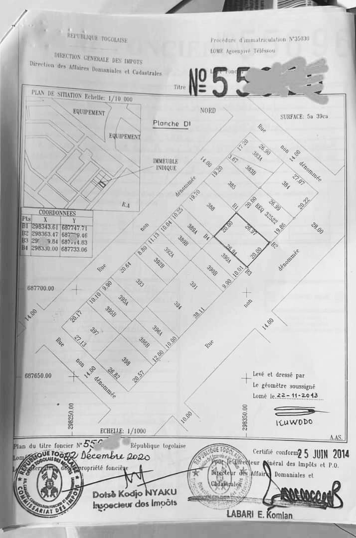 Baguida-AfanoukopéTerrain 2 lots collés cloturés avec titre foncier .. Tres bien situés sur la grande voie Anti-Gang ( 28m) dans un environnement propre et propice à toutes les activités ...