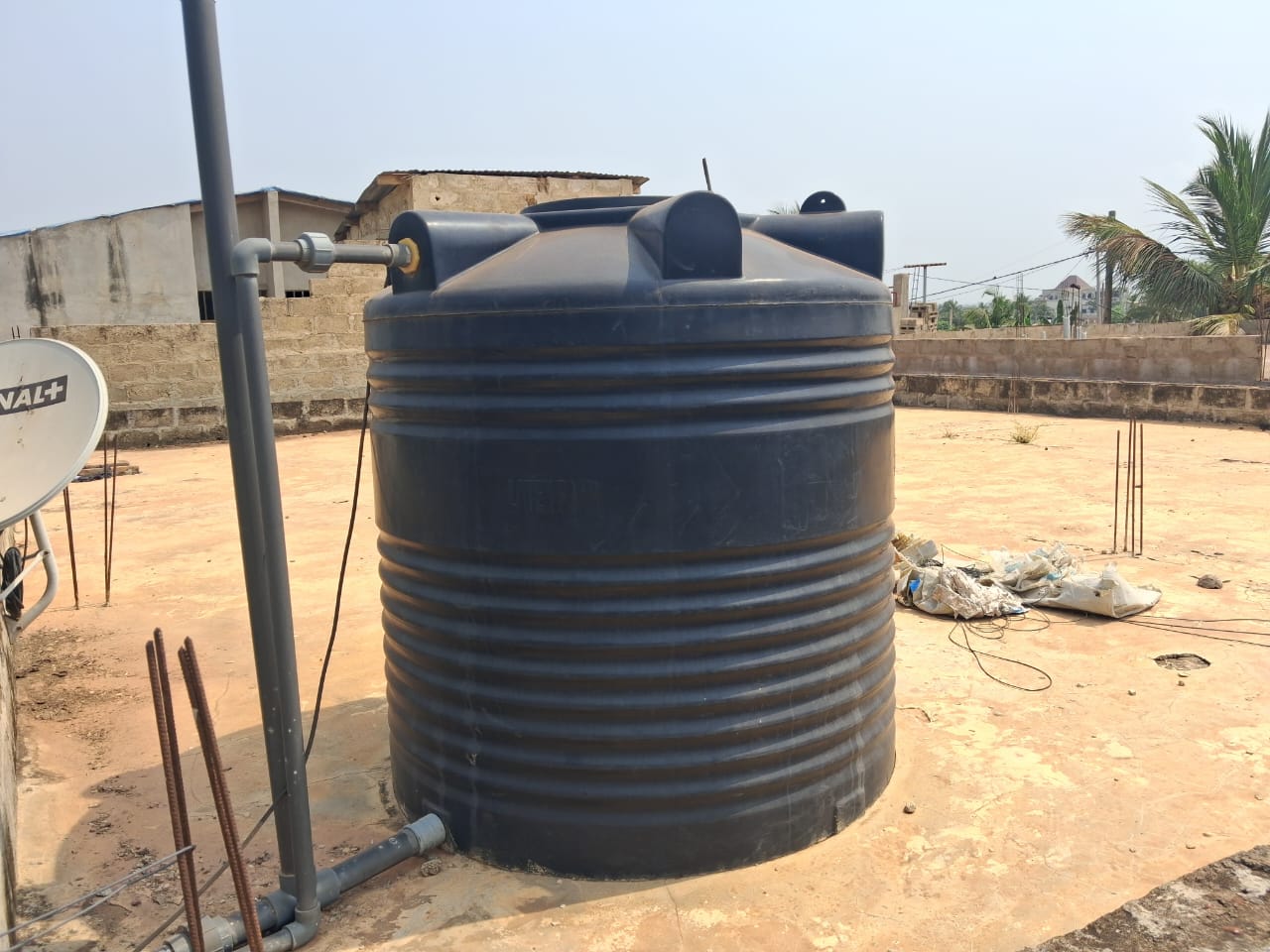 CaisseVilla dallée construite sur terrain 1/4 de lot avec un nouveau tampon OTR en baie vitrée, située dans une rue en face de la station SOMAYAF de Sogbossito à 1.2km environ du goudron et composée de :::