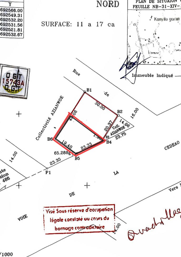 Baguida-AfanoukopéTerrain Stratégique de 1 lot cloturé avec un nouveau tampon OTR .... Magnifiquement situé en Bordure du goudron du contournement en plein centre ville à déduire de 2 lots collés à légbassito avinato...