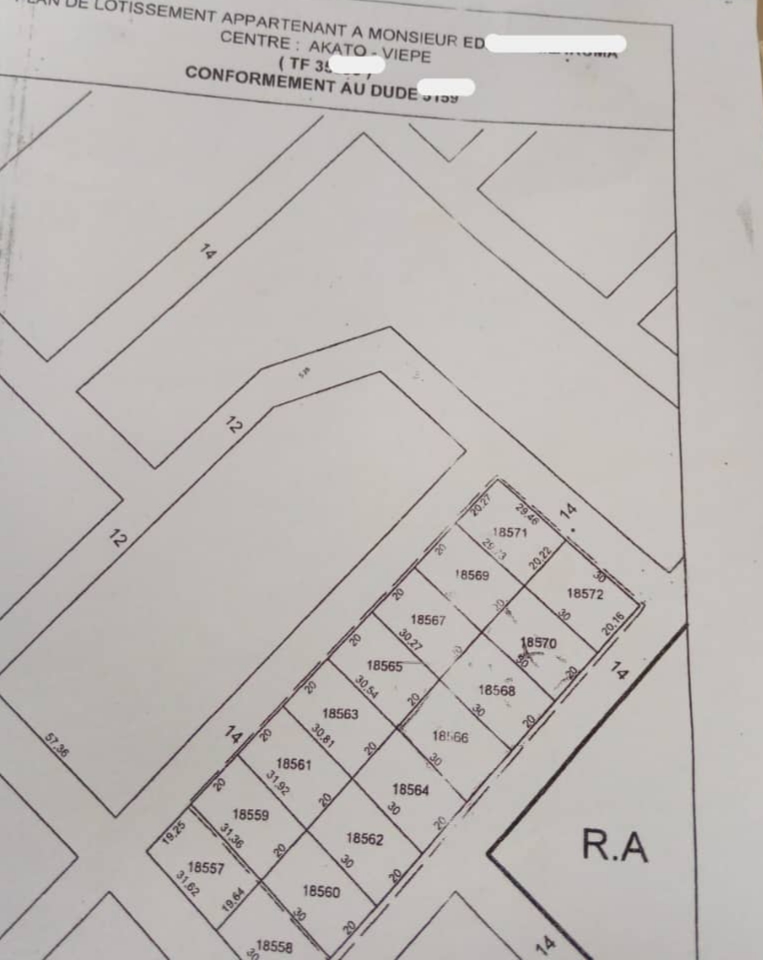 Baguida-AfanoukopéTerrain 4 lots collés avec titre foncier global ... bien situés à 150m du goudron AKATO BASE EBOMAF en angle de rue avec un accès direct au goudron...