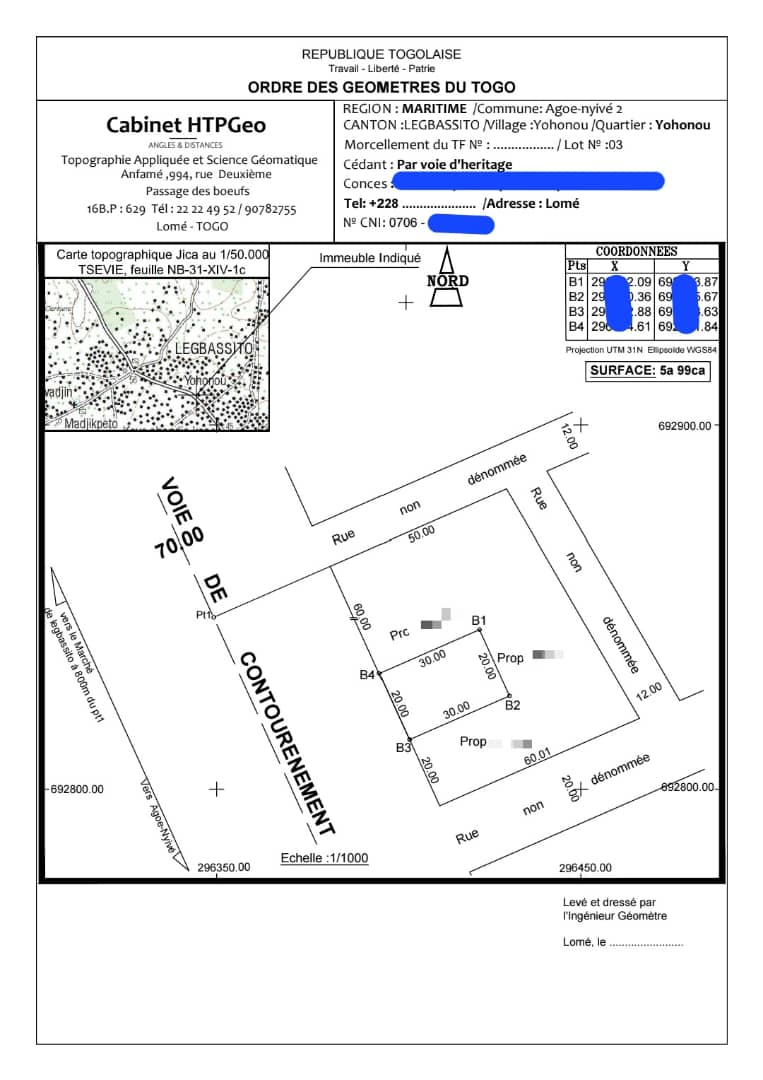 Baguida-AfanoukopéTerrain stratégique de 1 lot avec plan parcellaire et mandat de propriété .... magnifiquement situé en Bordure du goudron, non lon du Restaurant OPERA à légbassito appartenant à une collectivité ...