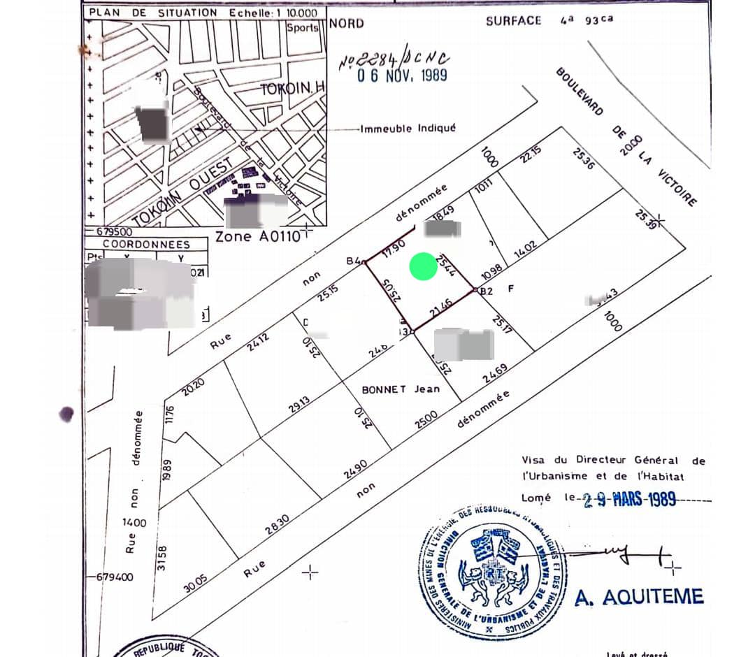 Baguida-AfanoukopéTerrain 1 lot cloturé avec titre foncier ( soit 500m2 ) très bien situé en plein centre ville à seulement 40m du goudron , non loin de la Clinique MYOREN et comportant quelques vieilles constructions à démolir ...