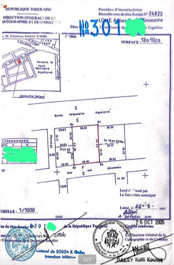Baguida-AfanoukopéTerrain Stratégique de 2 lots collés cloturés ( soit 1200m2 ) avec titre foncier... magnifiquement situés en Bordure du goudron en plein centre d'Agoè Assiyéyé non loin de la micro finance COPEC-FI