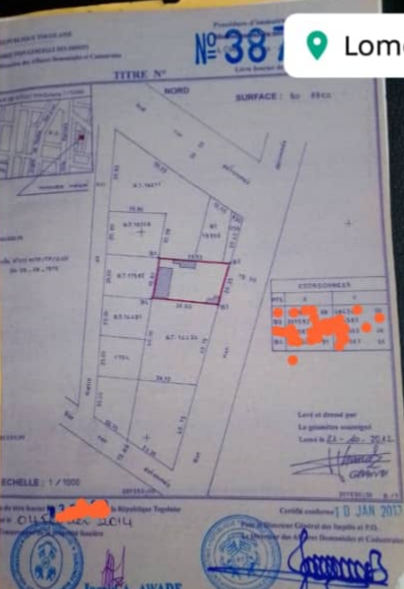Baguida-AfanoukopéTerrain 1 lot cloturé avec titre foncier .. très bien situé en plein centre ville juste à 100m de l'école Madone à Agbalépédo GTA et comportant des Studios de location..