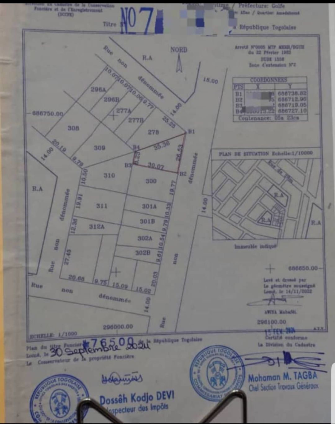 Terrain 1 lot cloturé ( soit 524m2 ) avec titre foncier .... bien situé non loin du Foyer des Jeunes à Amadahomé